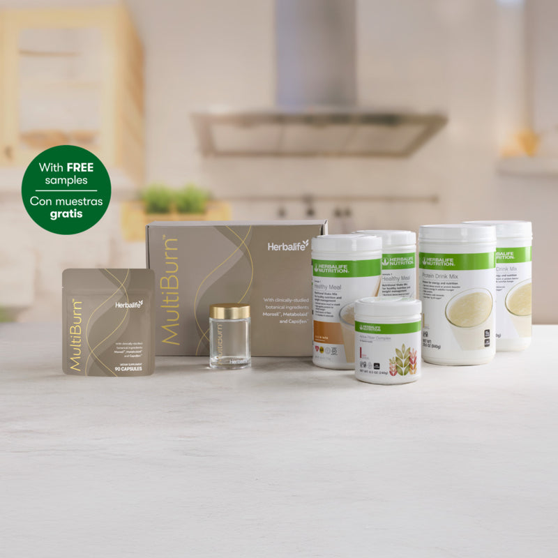 Support your weight-loss journey with the Evolve Weight Loss Program – featuring MultiBurn™ and the #1 protein shake in the world. * Discover More All You Need to Know About MultiBurn™ Download Evolve Weight Loss Program Guide Download Flyers Key Benefits MultiBurn™ is a multifunctional, multibioactive weight-loss supplement with clinically studied botanical ingredients † to support healthy, balanced weight loss ‡ Formula 1 Healthy Meal Nutritional Shake Mix and Protein Drink Mix help satisfy hunger and provide more energy with 24 grams of high-quality protein per serving Formula 1 Healthy Meal Nutritional Shake Mix contains 21 minerals and vitamins, including antioxidant Vitamins C and E, that support overall health and help protect the body from free radical damage Active Fiber Complex promotes regularity and a healthy digestive system with 6 grams of fiber per serving Fast Facts Contents of the Product Sample Pack are subject to change based on product availability. Usage Mix one serving each of Formula 1, Protein Drink Mix and Active Fiber Complex to create a delicious and easy-to-prepare shake Take three capsules of MultiBurn™ once per day with breakfast or lunch. For best results, this product should be taken daily for at least three months in combination with a healthy diet and physical activity. * Source: Euromonitor; CH2025ed, protein shake as sports protein powder, sports protein RTDs, meal replacement, supplement nutrition drinks & protein supplements; combined % RSP share GBO for 2024. † Formulated with Morosil™, Metabolaid ® , Capsifen™ which support overall weight loss, fat loss and healthy energy expenditure, respectively, in combination with a healthy diet and active lifestyle. ‡These statements have not been evaluated by the Food and Drug Administration. This product is not intended to diagnose, treat, cure or prevent any disease.